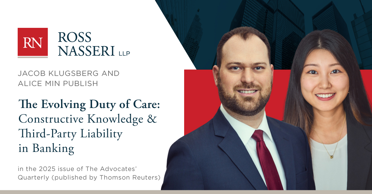 Congratulations to Jacob Klugsberg and Alice Min for their article in the September 2025 issue of The Advocates’ Quarterly (published by Thomson Reuters).
